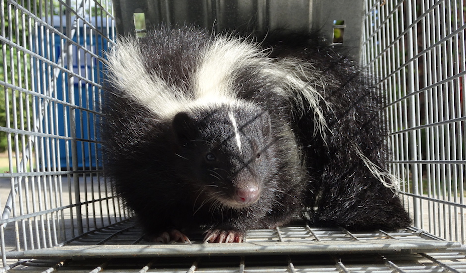 Skunks carry numerous diseases that present a hazard to people and pets. It is important to wear the proper protective equipment even when relocating a trapped skunk.